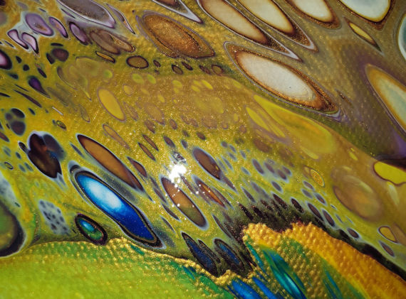 I really love this composition. The colour and textures are really fantastic. LOTS of gold. A friend thought - clouds on Jupiter. Really pretty. Smooth high gloss with painted canvas edges.